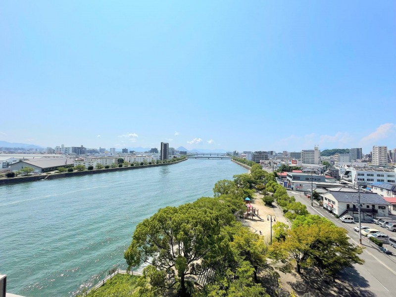 夏の眺望です。河口に近いので、季節ごとの川面の色の移ろいも楽しめそうでうす。